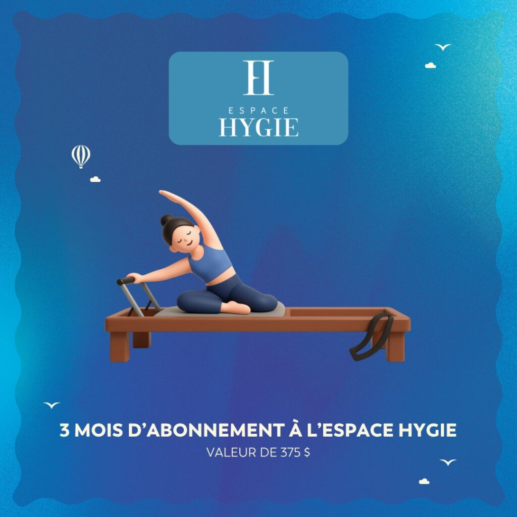 - Le 4e billet tiré donnera droit au quatrième prix, soit trois (3) abonnements d’un (1) mois à l’Espace Hygie. Valeur de 375 $ + taxes;