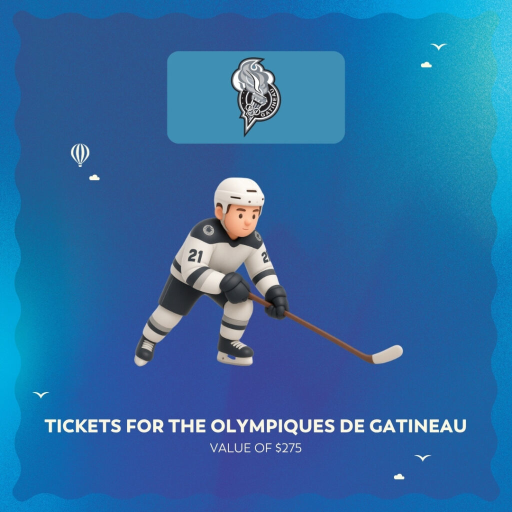 - The 2nd ticket drawn will entitle the winner to the second prize, namely one (1) gift certificate for a Flex booklet including ten (10) tickets for the Olympiques de Gatineau 2026–2027 regular season. Value of $275, taxes included;