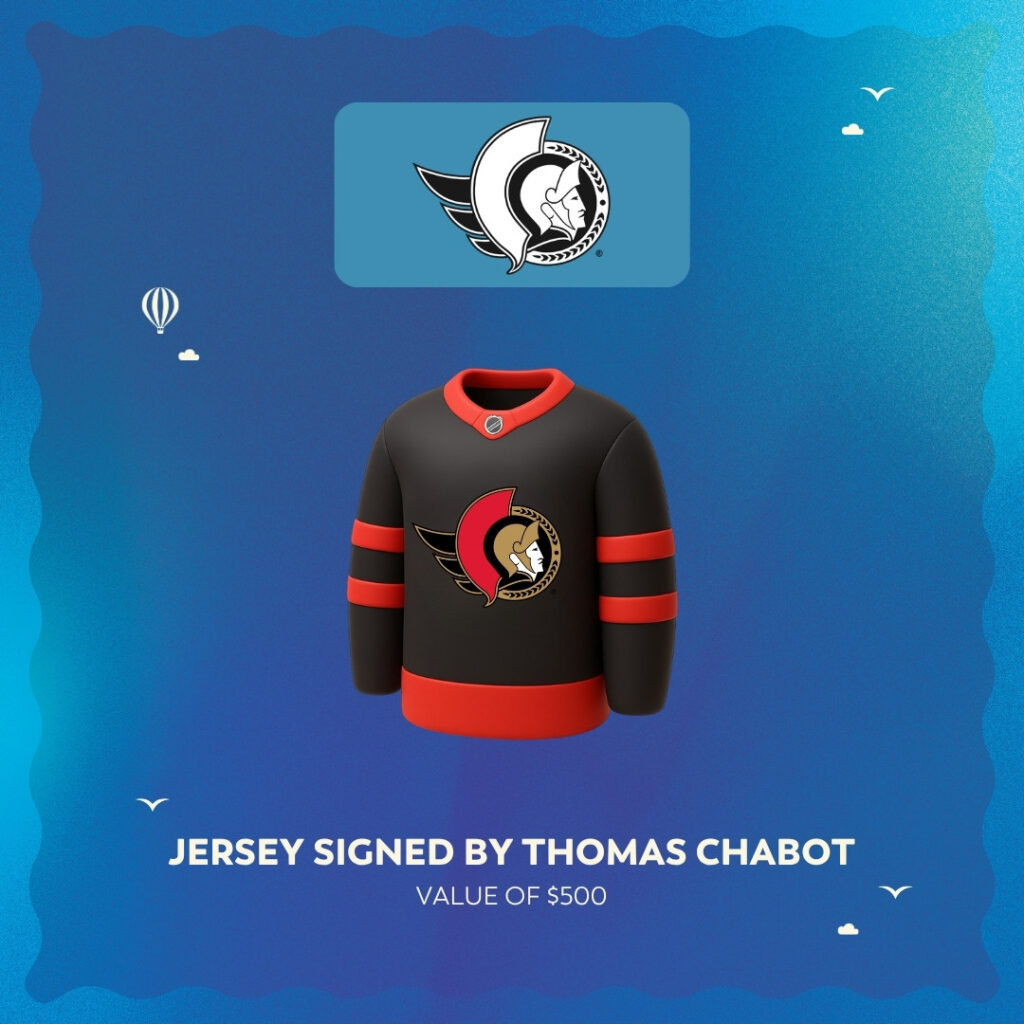 - The 5th ticket drawn will entitle the winner to the fifth prize, namely one (1) Ottawa Senators jersey signed by Thomas Chabot. Value of $500.
