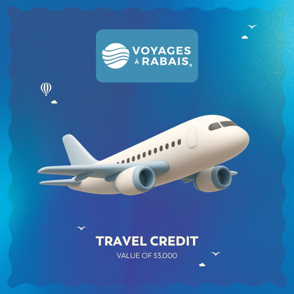 - The 1st ticket drawn will entitle the winner to the first prize, namely one (1) $3,000 travel credit, courtesy of Voyages à Rabais: applicable only to travel products sold by Voyages à Rabais; not applicable to flights and/or hotels sold separately; the winner must have booked and completed their trip no later than September 30, 2027; the credit must be used in full before departure; the credit must be applied to a single booking; the credit must be applied to a new booking; the winner must be part of the booking; applicable only to a regular-price booking and cannot be combined with any other promotion; a maximum of two travel credits may be applied per booking;